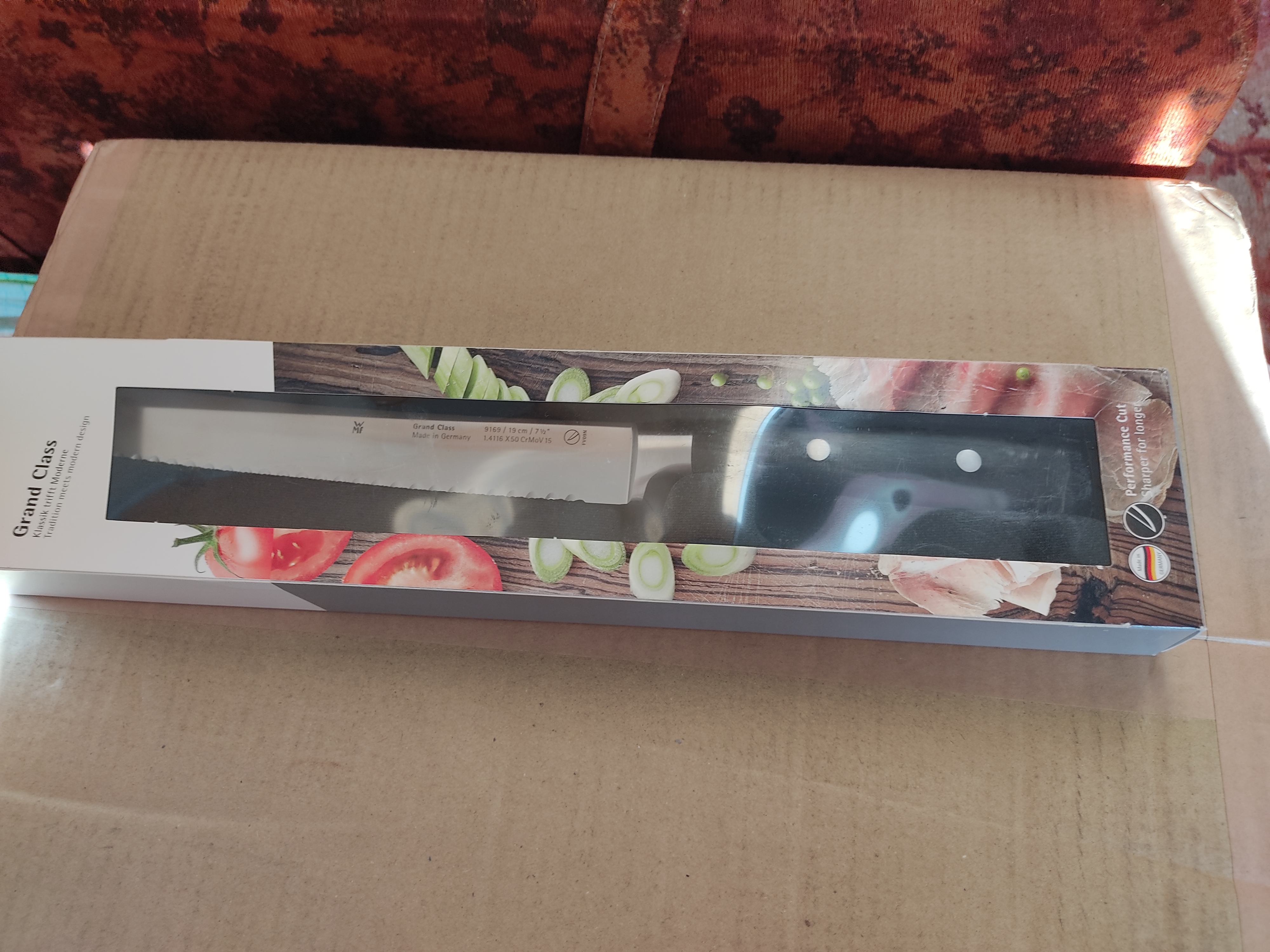 Да, нож для хлеба Grand Class входит в стандартную комплектацию многих наборов кухонных ножей от компании WMF.