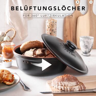 Благодаря системе вентиляции и впитыванию влаги, хлебница Römertopf 30 см помогает сохранить хрустящую корочку и мягкую середину хлеба.